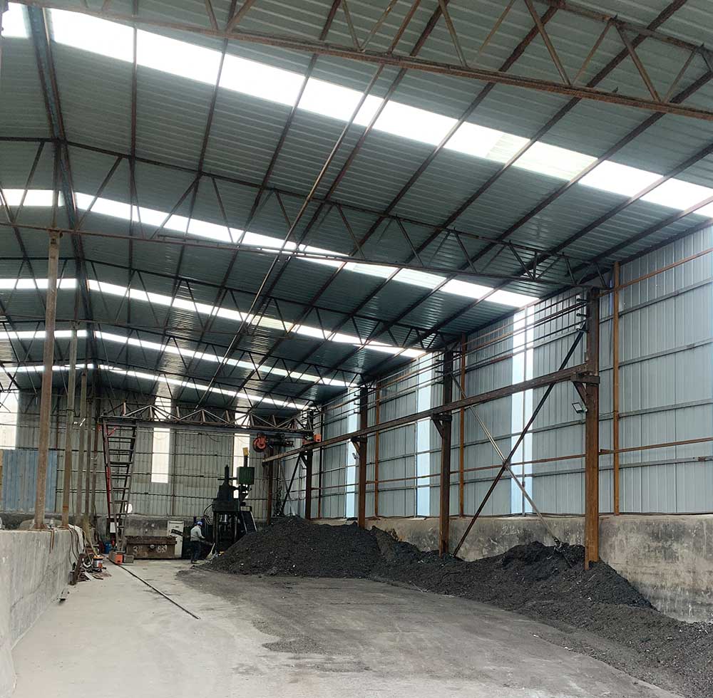 Workshoppen byder på en videnskabeligt og rationelt designet råvarekonfiguration. Den anvender råjern med høj renhed, "brødjern" (støbejern) og QT450 duktilt jern - materialer, der er karakteriseret ved høje metaludbyttegrader - som dets kerneråmaterialer, suppleret med HT250 gråjern, hvilket sikrer den overlegne kvalitet af de resulterende briketprodukter. Samtidig udnytter værkstedet fuldt ud de jernspåner og skrot, der opstår under fabrikkens egen bearbejdning. Ved at genbruge og genbruge disse materialer - som ellers ville forblive ledigt affald - opnår anlægget et cirkulært flow af produktionsressourcer, hvilket effektivt minimerer råmaterialespild og reducerer indkøbsomkostninger.